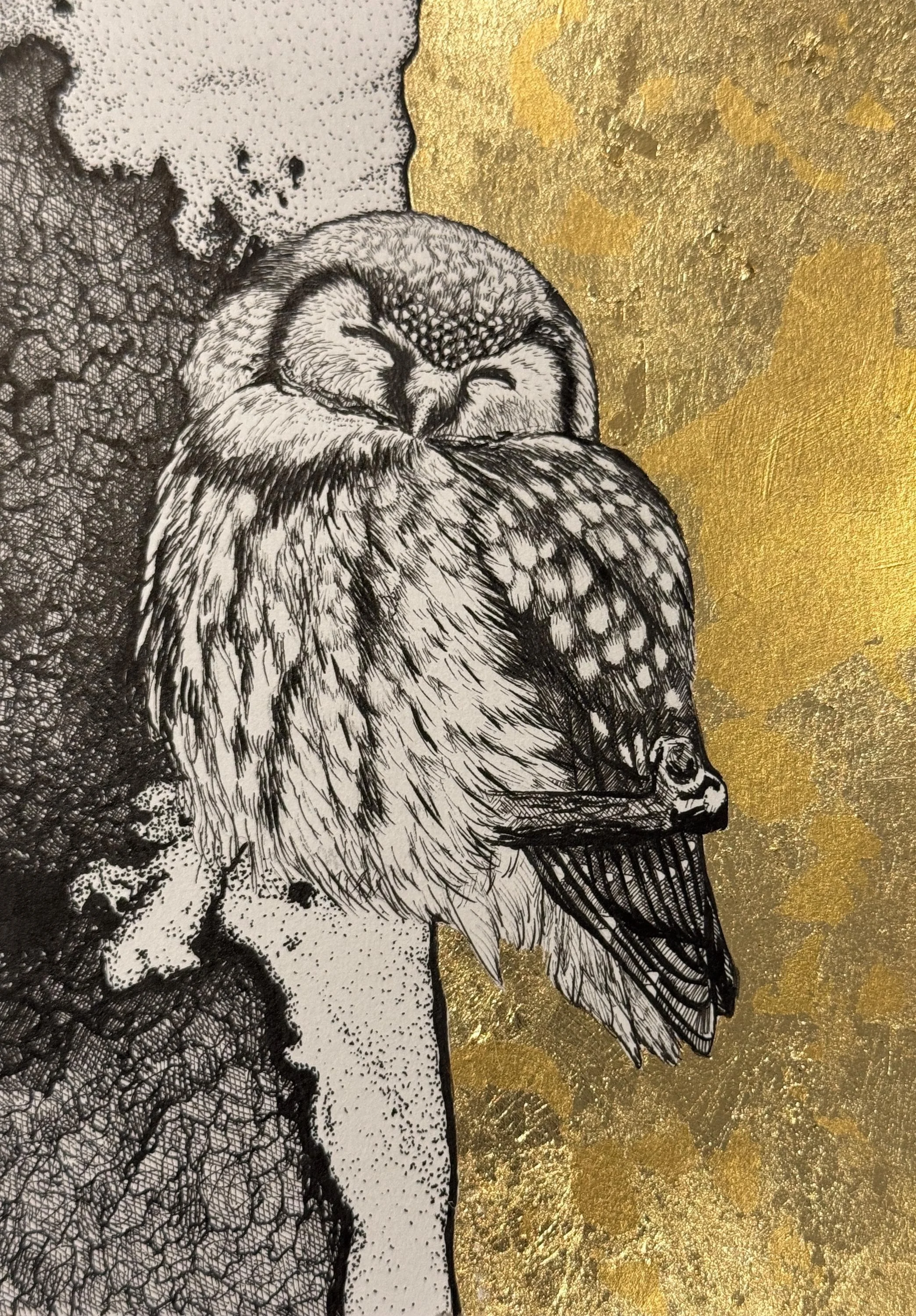 “Waiting for Fate” 11x14 archival ink on paper with gold foil